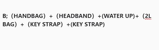 B;(HANDBAG)+(HEADBAND)+(WATER UP)+(2L BAG)+(KEY STRAP)+(mini bag)