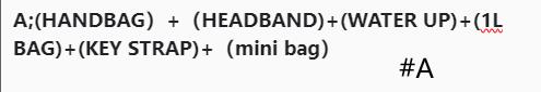A;(HANDBAG)+(HEADBAND)+(WATER UP)+(1L BAG)+(KEY STRAP)+(mini bag)